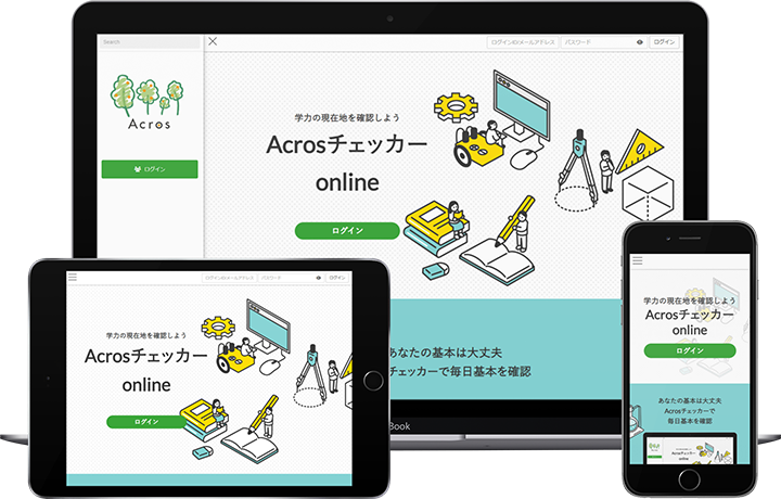学力の現在地を確認しよう Acrosチェッカーonline ログイン あなたの基本は大丈夫Acrosチェッカーで毎日基本を確認 Acrosチェッカーは基礎学力のトレーニングGYM アクロス個別指導学院 Acros HERE アクロス独自のチェックテストAcrosチェッカーに挑戦してみよう チェックテストに挑戦 メッセージ 学力を育てるとは、基礎基本を充実させることです。 あなたの基礎基本の現在地はどこでしょう。これを知ることは学力を育てるうえでとても大切な事です。 Acrosチェッカーはあなたの基礎基本のレベルを知るために アクロス個別指導学院が独自に作成したオンラインソフトです。 Contact お問い合わせ アクロス個別指導学院